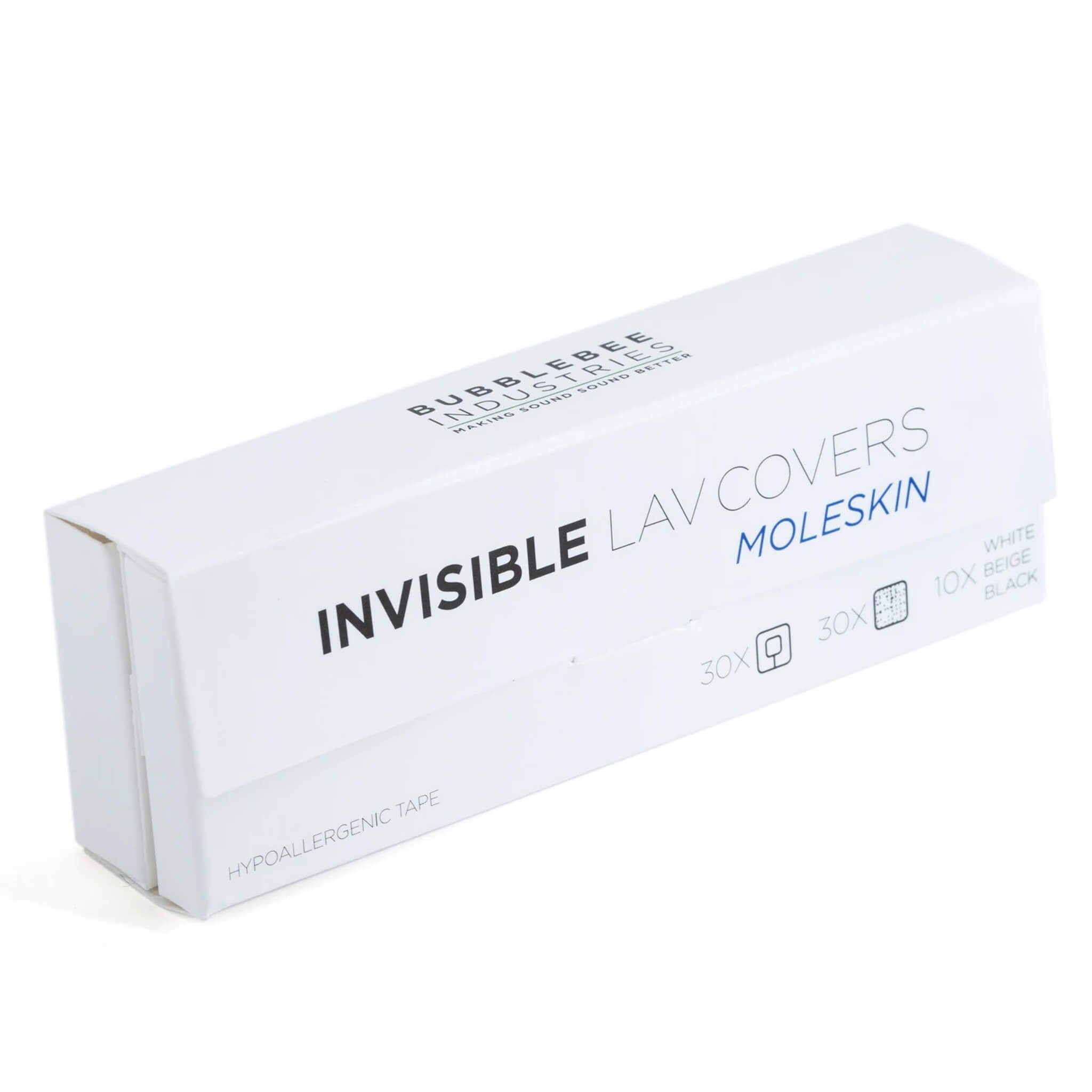 Each package of Invisible Lav Covers - Moleskin consists of 10 black, 10 white, and 10 beige pieces of super-soft fabric and 30 pieces of our high-quality Invisible Lav Tape.