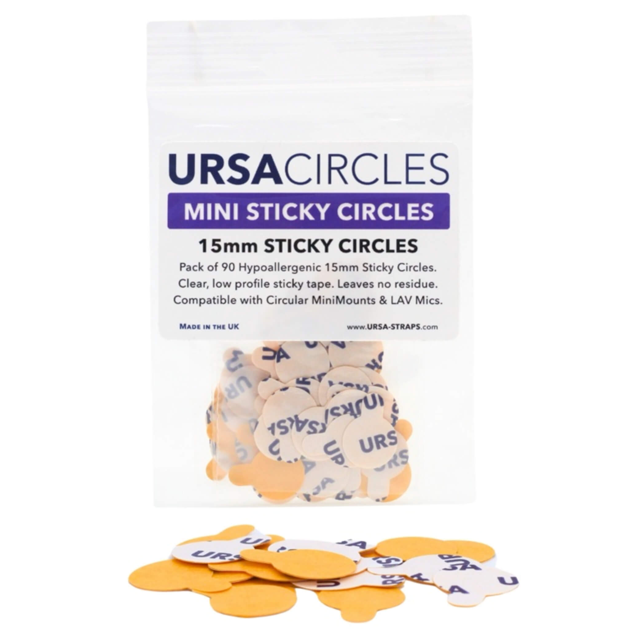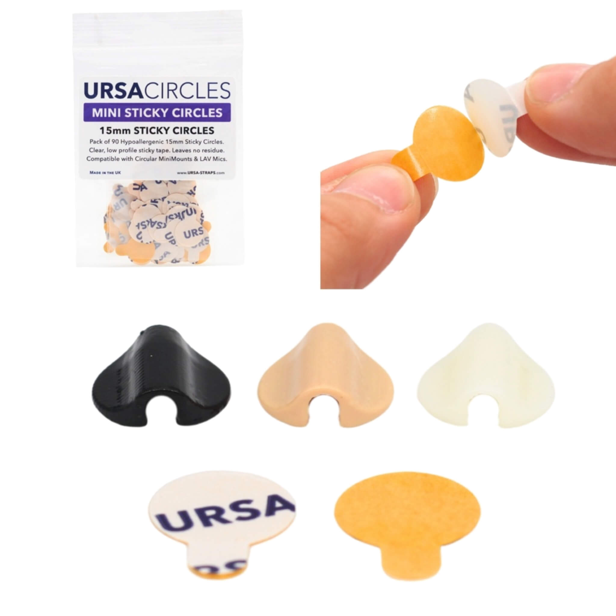 Each Mini Sticky Circle comes with a convenient peel-off tab for quick application. They work seamlessly with URSA Circular MiniMounts for the DPA 6060, and attaching LAV mics directly to the skin or costume due to their small diameter.